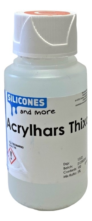 Acrylic resin Thixo is a component that can beadded to your liquid Acrylic resin mixture to make it thicker. This will result in a gel or a paste which can be used for vertical or overhanging surfaces.